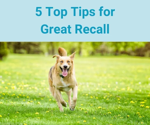 Download your FREE 5 Top Tips on how to get great recall with your dog. These top tips look at whether your dog understands what you mean when you call them, to how to make your walks more fun and interactive.